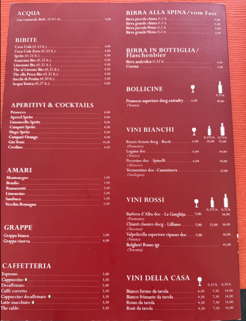 The pasta section doesn’t disappoint either. The classic Spaghetti Carbonara delivers a rich and creamy sauce with pancetta, while the Spaghetti Bolognese brings a delicious, hearty meat sauce that pairs perfectly with the al dente pasta. Additionally, the Schnitzel Wiener Art offers a crispy, golden breaded cutlet, satisfying anyone looking for a flavorful and satisfying meal.