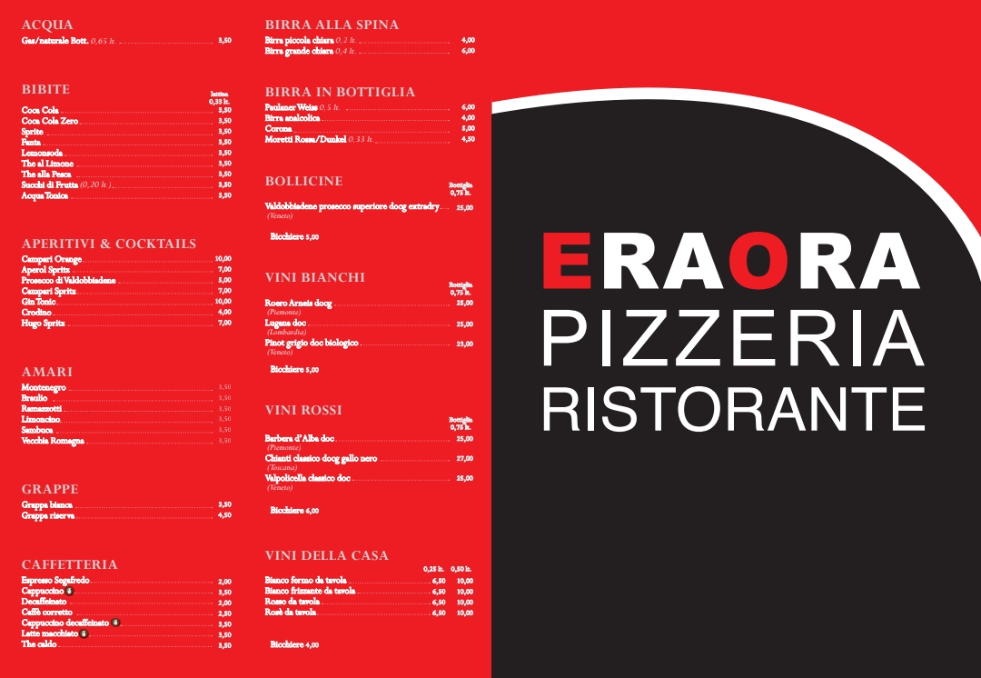 The Mozzarella Di Bufala Pizza is another highlight, with its creamy mozzarella cheese taking center stage, complemented by a simple yet flavorful crust. Whether you're craving pizza, pasta, or something in between, the menu at Pizzeria Eraora promises a variety of delicious options that will leave you coming back for more.